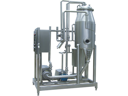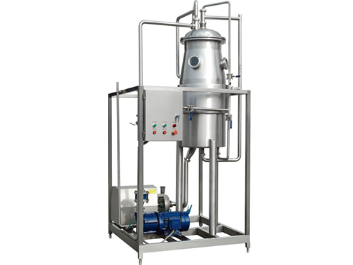 本設(shè)備采用真空系統(tǒng)脫氣,用于牛奶、果汁等脫出異味及氧氣,并配有香氣回收設(shè)備;該設(shè)備主要由脫氣室、冷凝器、真空泵等幾部分組成。